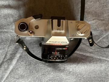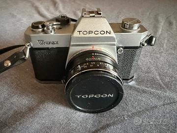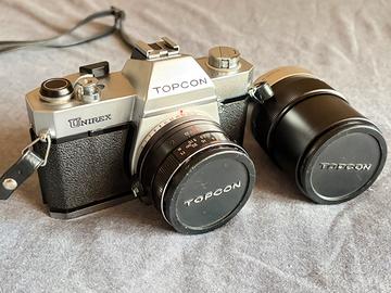 Macchina fotografica vintage Topcon Unirex EE + obiettivo zoom. Completi di custodia originale.