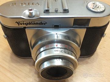 VENDO macchina fotografica vintage, marca “VOIGTLANDER” modello “VITO B”, obiettivo Color-Skopar 1:3,5/50, anno 1954 per collezionismo. Completa di custodia originale in pelle. Se interessati, solo ritiro a mano, no spedizione.