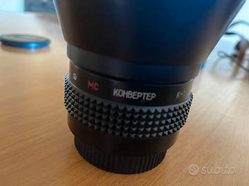 Macchina fotografica Zenit EM russa con obiettivo HELIOS 44/58mm Custodia originale Portaobiettivi Teleobiettivo KOHBEPTEP 4/200 Compreso custodia originale in cuoio Trattabili