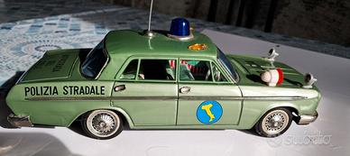 Macchina latta vintage "Polizia Stradale" (Autostrada del sole) Toy Asahi Company. Versione senza batterie - anni '60 ToyoPet. Tutte le ruote sono funzionanti ed emettono (quando spinta a mano) un sibilo che imita la sirena.