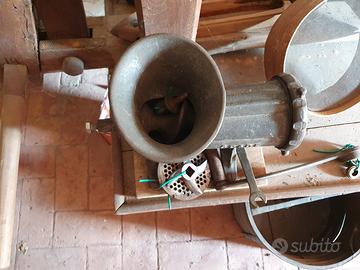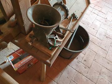 Macchina manuale Antica della 3 Spade per salami. Completa di lame e asse d'appoggio, misura circa 37cm. 120? Solo ritiro in loco vista e piaciuta così come si trova.