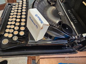 macchina per scrivere Olivetti ICO MP1 di colore nero con qualche segno del tempo sulla carrozzeria per vernice mancante ma perfettamente funzionante con la sua custodia, viene spedito con nastro nuovo a parte e pennello, preferibile ritiro a mano, per qualsiasi informazione resto a disposizione