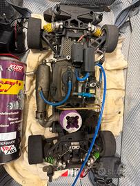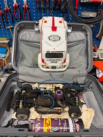 Macchina radiocomandata a scoppio 1:10 in ottime condizioni con motore STS 5 travasi. Non la utilizzo da qualche anno. Completa di pipetta accendicandela, avviatore motore, riceventi, servi e radiocomando. Scocca: 500 Abarth