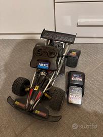Dune buggy in scala 1:16, progettata per l'uso fuoristrada. L'immagine mostra il set, inclusi il veicolo, il telecomando e la batteria ricaricabile Ni-Cd da 6.0V. . Sprovvista di scatola