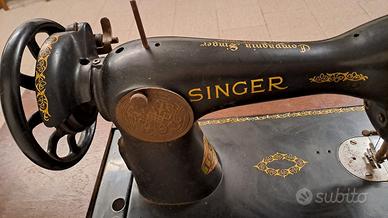 Macchina da cucire SingerN.15 M88 del 1941, con libretto e accessori originali e base in ghisa. E' completa di mobiletto in legno allungabile a lato, con cassettini e vano interno richiudibile con copertura. Usata, ma tenuta molto bene.
