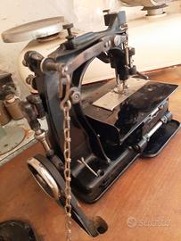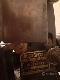 n. 2 macchine da cucire antiche, professionali a cinghia, con motore, periodo primi Novecento di fabbrica tedesca "Union Special" di Stoccarda, importate dalla " Giovanni Conti & Nipoti" di Milano. Due aghi, bordatrice e rimagliatrice, corredate di tavolino da appoggio in legno. € 400,00 l'una