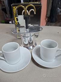 macchinetta da caffè espresso Bialetti con 2 tazzine e 2 piattini ancora completa di scatola originale