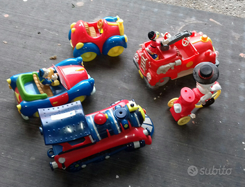 4 automezzi disney a batteria × pupazzo a carica in bicicletta 20 euro cad totale a stock 70 euro