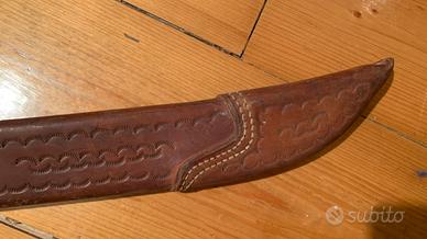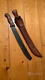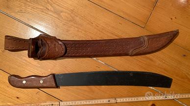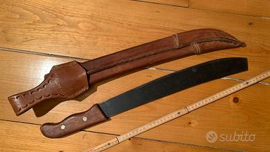 Macete completo di fodero , proveniente da cuba , fodero in cuoio robusto con anello per la cintura , cucito a mano e ben lavorato , misura totale cm 65 circa