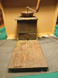 vecchio macina caffè di grandi dimensioni cassa cm 26 x 27 x h 30 , misure compresa base lunghezza cm 76 x 30,5 x h 56 compresa manetta. quello nella prima foto non è in vendita.
