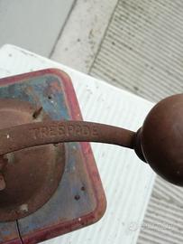 Macinino tre spade, integro ma da restaurare da un appassionato, come da foto, simpatico oggetto per un estimatore di cose di una volta. Prezzo leggermente trattabile. Ritiro solo a mano in loco.