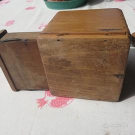 Vecchio macinacaffe, in legno, buone condizioni. Mis 11x11 alt 21cm.peso 833 gr. È come lo vedete in foto.