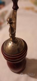 Macinapepe dal design vintage, con base in legno scuro e parti superiori in metallo.
