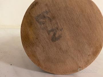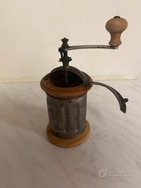 Macinino per caffè antico. In legno e altro materiale ferroso. Tre spade.