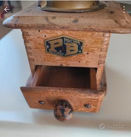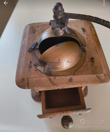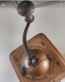 Macinino vintage in legno con meccanismo in acciaio, in stato originale, non ha subito trattamenti, funzionante