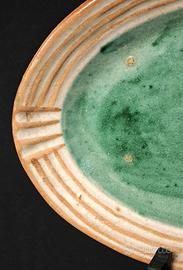 MACS Vietri, Vassoio in ceramica vietrese databile tra gli anni 40 e 50, decorato a mano con lo smalto nel tipico verde ramina dell’epoca.