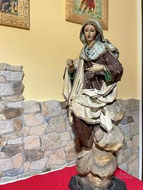 Madonna in cartapesta del 1800 . Occhi di cristallo e merletti ricamati a mano . Da restaurare . Manca il bambinello