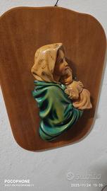 Madonnina con il bambino su supporto di legno Anni 50 Piccoli segni del tempo visibili in foto dimensioni cm 32 x 40