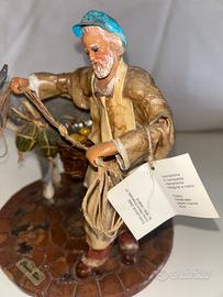 * Dettagli dell'opera: Raffigura un pastore che conduce un asino carico di zucche e cesti. La base simula un antico ciottolato e include la targhetta metallica con firma dell'autore.