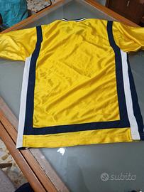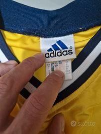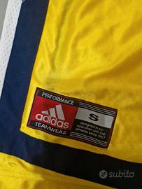 Vendo maglia Adidas da basket, taglia S, della linea Performance. E' gialla con dettagli blu scuro e bianco. -Perfetta per chi cerca un capo vintage sportivo.