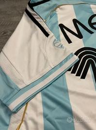 E' la storica e rarissima maglia numero 19 di Lionel Messi, leggenda di ogni tempo, al suo esordio con la Selección in una manifestazione internazionale, con la quale segna il suo primo gol ufficiale contro la Serbia e Montenegro, nella partita vinta per 6-0.