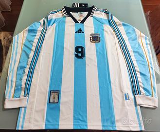 magloa dei Mondiali Francia 98 stile vintage taglia L da collezione del bomber ex fiorentina e Roma Gabriel Omar Batistuta ex top player del campionato italiano di calcio ottima come regalo, sport, calcetto, passeggiata, jogging a maniche lunghe