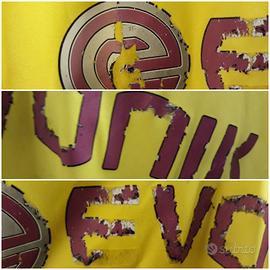 Maglia Borussia Dortmund stagione 2012-2013 marca Puma made in Georgia, tg XL (ascella 56 cm circa, altezza 76 cm circa). PRESENTA LO SPONSOR COMMERCIALE DAVANTI TERMOAPPLICATO ROVINATO A CAUSA DEL LAVAGGIO (VEDASI DETTAGLI FOTO). Presenta colletto in tessuto con bottoni provvisti di asole. Lo stemma del club ed i loghi Puma davanti e su entrambe le maniche sono ricamati in rilievo sul tessuto. Presenta targhetta in plastica di prodotto ufficiale termoapplicata in basso davanti a dx. Articolo usato ma in buone condizioni generali nonostante il difetto descritto, e ben conservato.