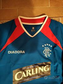 Maglia originale Glasgow Rangers anno 2004. Sponsor tecnico Diadora, mai indossata e conservata in collezione. Maglia originale acqustata nel 2004 presso gli store ufficiali durante un viaggio in Scozia. Taglia M