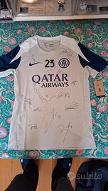 Maglia ufficiale allenamento Inter Barella autografata a mano a pennarello da tutti i titolari Inter 2025-26