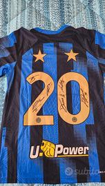 Maglia Inter 2023-24 Seconda Stella repl. uff. autografata da Federico Dimarco Denzel Dumfries Davide Frattesi Carlos Augusto Krijstian Asllani Tajon Buchanan a pennarrello con certificato di autenticità