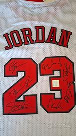 Maglia Bulls Micheal Jordan autografata Micheal Jordan Scottie Pippen Denis Rodman Tony Kukoc Ron Harper Steve Kerr Phil Jackson con certificato di autenticitá formato libro.9