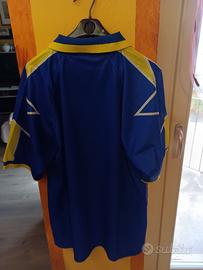 Questa specifica versione presenta lo sponsor Sony MiniDisc, che fu introdotto nella seconda parte di quella stagione. E' un pezzo iconico della storia bianconera, legato a campioni come Alex Del Piero e Zinèdine Zidane. CARATTERISTICHE PRINCIPALI * Colore: Blu reale con inserti gialli sulle spalle che formano il profilo di due grandi stelle. * Sponsor: Sony Minidisc stampato nel tessuto (nella prima parte della stagione lo sponsor era solo Sony. *Dettagli tecnici: Logo Kappa ricamato sul petto a destra e le due stelle dorate ricamate a sinistra: *Stagione: 1996/97, annata in cui la Juventus vinse lo Scudetto, la Coppa intercontinentale e la Supercoppa Europea. ** ORIGINALE ** Mai usata ** Condizioni perfette *** Solo spedizione