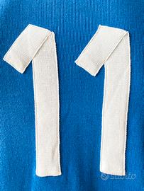 Maglia Juventus da trasferta, Finale coppa UEFA 1977, n.11 Bettega. La maglia è una riproduzione ufficiale, in tiratura limitata, della linea Old Legend Jersey (in origine fatte da Kappa), ormai fuori produzione da oltre 15 anni. Realizzata in 100% cotone Makò elasticizzato. Il tessuto è impeccabile, essendo un pezzo da collezione mai indossato e conservato nella sua busta originale. Taglia XL come indicato sulla confezione. Visto e piaciuto.