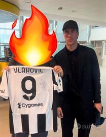 Vendo maglia ufficiale Juventus Home originale e autografata a mano da Dušan Vlahović con pennarello indelebile.