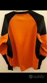 Maglia da portiere della Salernitana stagione 2005-2006, marca Asics, taglia non leggibile ma dovrebbe essere una L (ascella 58 cm circa; altezza 73 cm circa; lunghezza maniche da polsino ad attaccatura colletto 80 cm circa). IL LOGO ASICS SU SPALLA SX SI È PARZIALMENTE RIMOSSO (vedasi dettaglio foto). INOLTRE HO FATTO CUCIRE SU ENTRAMBE LE MANICHE DEI POLSINI AGGIUNTIVI POICHÉ MI ERA CORTA DI MANICHE. Il logo societario è ricamato in rilievo e termoapplicato sul tessuto. PRESENTA QUALCHE PALLINO SULLE IMBOTTITURE E SULLE SPALLE (Tutti i dettagli in foto). Articolo originale del periodo, è in ottime condizioni generali e ben conservato nonostante gli anni.