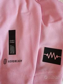 Maglia taglia M, taglia indossata da Messi con Adidas. La maglia è stata ottenuta per contatti all'interno dello staff dell'Inter Miami. Io ero presente alla partita, a bordo campo. Conservo anche biglietto e foto/video del giorno. La toppa non è mai stata resa disponibile per il commercio al pubblico, ma esclusivamente riservata al giocatore il giorno della partita contro New York, giocata a novembre 2023, dopo la celebrazione della vittoria del pallone d'oro, avvenuta la sera stessa. È la maglia della celebrazione dell'ottavo pallone d'oro (un record assoluto e irripetibile) e della partita giocata il giorno stesso alla celebrazione, contro il New York city. La maglia è stata prodotta da Adidas nell'ottobre dello stesso anno. L'evento è stato a inizio novembre. I compagni di squadra avevano invece una didascalia sul petto. La toppa al centro è stata prodotta solo per Messi. La maglia con tutte queste caratteristiche, è chiaramente introvabile. Un pezzo da museo, della storia dello sport, del più grande vincente di tutti i tempi.