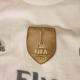Vendo maglia originale del Real Madrid Adidas, stagione 2015-2016, in condizioni pari al nuovo, senza segni di usura. 🔍 Caratteristiche dettagliate: • Logo celebrativo "14 Champions" centrato sotto al colletto • Sponsor Fly Emirates grande al centro (senza screpolature) • Stemma olografico della Champions League (pallone) sulla manica destra • Stemma "La Décima" (coppa con numero 10 su sfondo scuro) sulla manica sinistra • Colore bianco, tessuto perfetto, nessun segno di usura o scoloritura TAGLIA: S