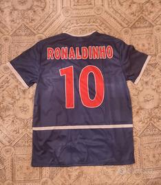 Articolo maglietta PSG di Ronaldinho dell'anno 2002/2003, in perfette condizioni. Mai usata. Nessun difetto da segnalare. Nuova. Misure: taglia L, spalle 46cm, lunghezza 72cm.