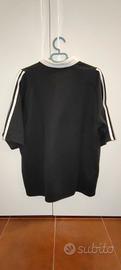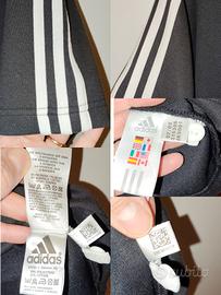 Maglia rugby Nuova Zelanda anno 2003, in tessuto misto cotone poliestere, marca Adidas made in China, tg L. Presenta colletto alla coreana chiuso da 1 bottone in gomma con asola, ed 1 bottone di scorta cucito su etichetta interna. I loghi e le scritte davanti sono ricamati in filo bianco in rilievo e termosaldati. Sul fianco sx è cucita esternamente targhetta in tessuto con scritta Clima Lite. Le bande bianche laterali Adidas lungo le maniche sono cucite sul tessuto. Articolo originale dell'epoca, poco usato, è in ottimo stato generale e ben tenuto