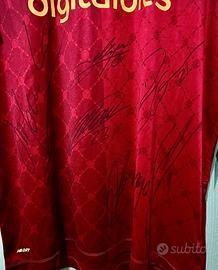 Maglia da gioco AS Roma taglia L autografata dai giocatori Macini, Zaniolo, Dybala, Abraham, ed altri giocatori stagione 2022-2023 vendo per raccolta fondi beneficienza