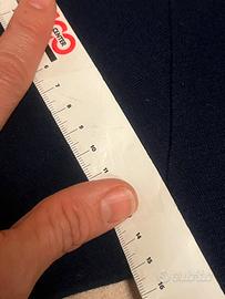 Dato che è una taglia 44 Vintage riporto per sicurezza le misure: da spalla a spalla 38,5 cm, da ascella ad ascella circa 46 cm, punto vita 40 cm, larghezza manica manica circa 15 cm, lunghezza manica 56 cm.