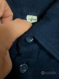 Maglia Uomo color blu notte Vintage. Maglia vintage uomo taglia Magnolia 3 che corrisponde a una 44 italiana quindi XS. Il collo è tipo camicia con chiusura a 4 bottoni, polsini lisci senza bottoni. Il materiale è cotone e un po di nylon. La maglia è in buone condizioni dato gli anni.