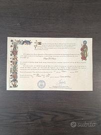 Questa non è una semplice maglietta. È un pezzo unico da collezione, creato durante il Cammino di Santiago raccogliendo personalmente i timbri lungo il Cammino del Nord e il Cammino Primitivo. La parte frontale è completamente ricoperta da timbri autentici, ognuno raccolto in ostelli, chiese, comuni e punti ufficiali del percorso. Ogni segno rappresenta una tappa reale del viaggio. Il dettaglio più significativo si trova all’altezza del cuore: il timbro finale di Santiago con la data di arrivo, simbolo del completamento del cammino. La maglietta non è stata indossata, ma utilizzata esclusivamente per raccogliere i timbri, così da conservarli in ottime condizioni. ⚠ Non è un capo da indossare, ma un oggetto pensato per essere appeso ed esposto. La Compostela (certificato ufficiale del cammino) è visibile nelle foto come prova dell’autenticità del viaggio. Ideale per: – appassionati del Cammino di Santiago – collezionisti – chi cerca un oggetto autentico legato a un’esperienza reale Oggetto unico e irripetibile. Prezzo trattabile: contattami per offerte serie