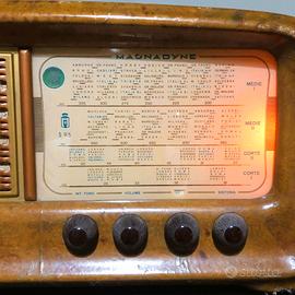 Magnadyne S 95, Radio d'epoca a valvole prodotto intorno agli anni '50. L'azienda torinese Magnadyne Radio, fondata nel 1928, fu un importante produttore italiano di apparecchi radiofonici. La radio è funzionante ( come si vede dalle foto ) Il mobile è in legno, impiallacciato in radica con evidenti segni del tempo esclusivamente nella parte inferiore Presenta la dicitura " S95 " al lato sinistro del quadrante e indicazioni per bande di frequenza come "MEDIE", "CORTE". Queste radio sono ormai considerate oggetti da collezione.