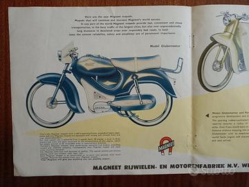 Depliant originale d’epoca della ditta Olandese Magneet che pubblicizza i ciclomotori Globemaster, Stylemaster , ME 59 e lo Scooter B 50, con motori Sachs. Depliant in Inglese di 2 pagine , 4 facciate , dimensioni pagina cm. 20,5 x 19. Spedisco con Poste Italiane.