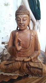 Magnifico buddha per Meditazione vintage. Manufatto artigianale scolpito in legno.