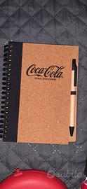 Bel lotto gadget della Coca Cola così composto: -Taccuino copertina sughero con penna -Agenda con sovracopertina in sughero con penna -Agenda Rossa -Porta cd rotondo rosso -Porta musicassette forma bottiglia -Modellino camion Coca Cola Tutto come nuovo. A parte agenda rossa che presenta nelle prime 4 pagine pochissime scritte con matita.