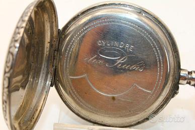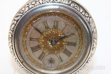 Questo magnifico orologio da tasca in argento risalente alla fine del 1800 rappresenta un eccellente esempio di maestria orologiaia e decorativa dell'epoca vittoriana. La cassa, con un diametro importante di 47 mm, è interamente lavorata a sbalzo e incisione con motivi floreali e volute che ne percorrono l'intero perimetro e il retro, dove campeggia un raffinato scudo centrale pronto per essere personalizzato. Il quadrante è un vero capolavoro di estetica antica, caratterizzato da numeri romani e da una ricca zona centrale dorata con lavorazioni geometriche e floreali, completata da una ghiera perimetrale altrettanto preziosa che incornicia il tempo con un fascino d'altri tempi. Pur essendo un pezzo funzionante che conserva intatta la sua meccanica originale, la veneranda età dell'oggetto suggerisce una revisione tecnica per garantirne la precisione e la durabilità nel tempo. Si tratta di un oggetto da collezione di rara bellezza, perfetto per chi desidera possedere un frammento di storia meccanica conservato con cura e caratterizzato da una patina autentica che ne esalta il valore storico.