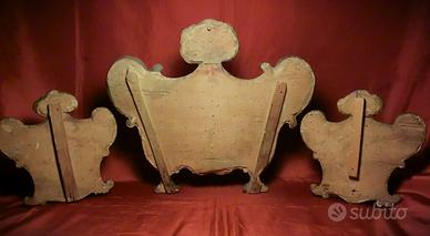 Bellissimo servizio di Cartagloria originali SEICENTESCHI (una centrale e due laterali) in legno con CARTIGLI SCRITTI A MANO DA COPISTA AMANUENSE.
