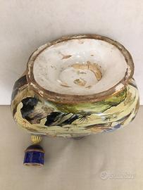 Bellissima fiasca del Pellegrino in maiolica istoriata con scene vessellifere,sec. 1800 perfetta ,altezza cm. 42